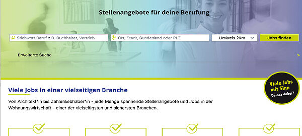 Die Jobbörse der Wohnungswirtschaft wurde von uns überarbeitet und optimiert – im Backend erhalten Kunden vereinfachte Eingabemöglichkeiten. Im Frontend fallen die neu integrierten Farben und die erweiterten Eingabe- und Suchmöglichkeiten ins Auge.